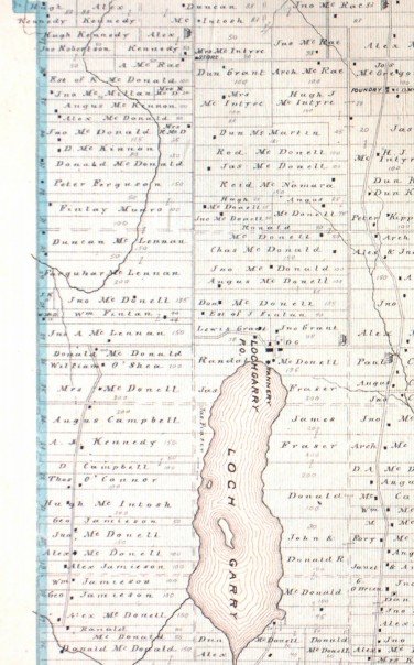 The people who settled the new Glengarry in south-eastern Ontario were from Lochbar and the Hebrides, most of them MacDonalds, MacDonells, MacMillans, MacGillivrays, McGillises, MacMasters, Grants, McIntoshes, McLeods, Camerons, Kennedys, and McMartins; other great names were there, too.