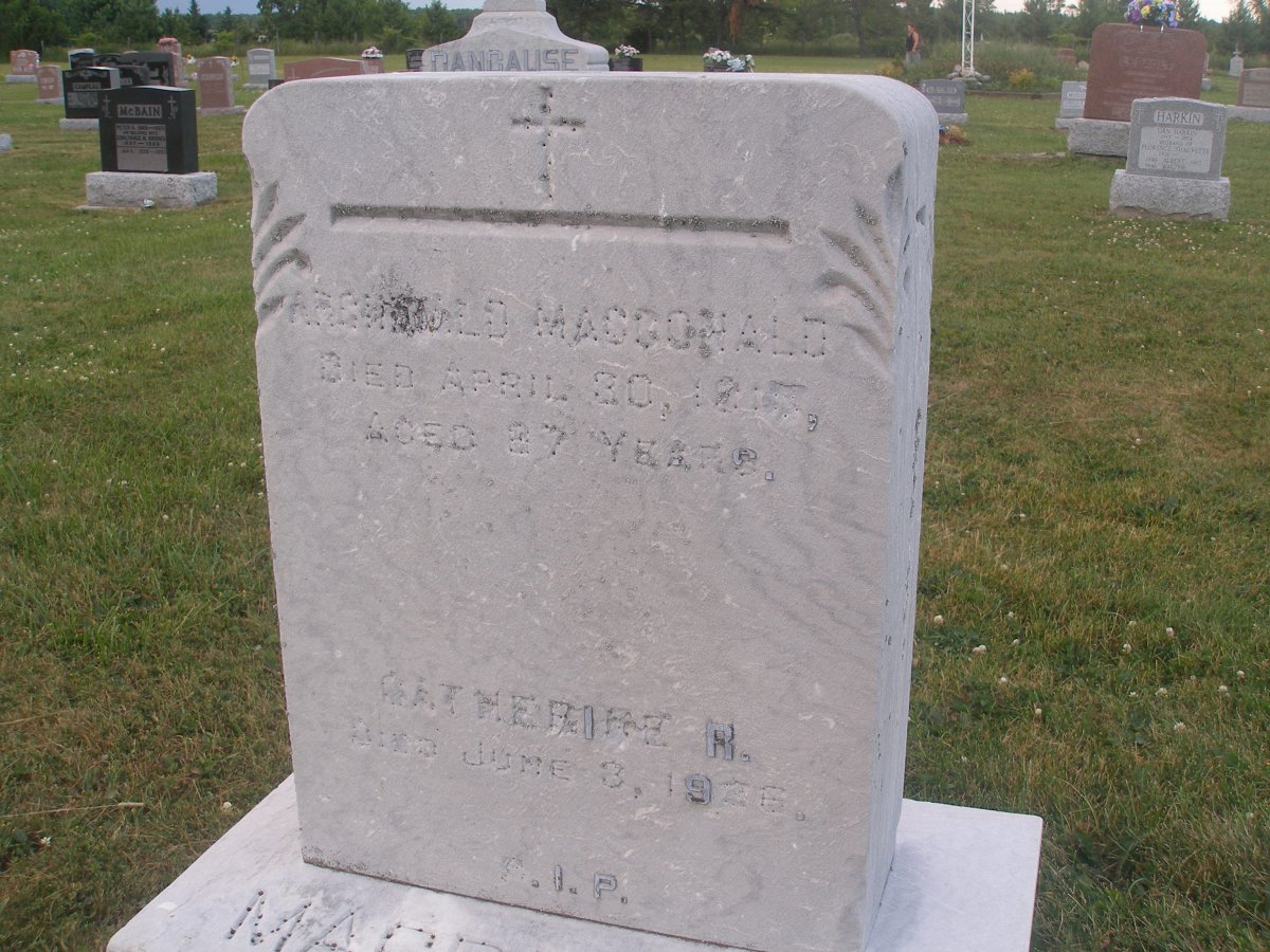 And of course St. Raphael's. I never knew that Ranald MacIsaac MacDonald 1754-1859 and Janet Cameron 1783-1863 were buried there. They would be interesting to look for. Janet was the young one that got married at age 14 in Scotland. Had 8 children there and 7 of them moved to Canada, one to Australia.
