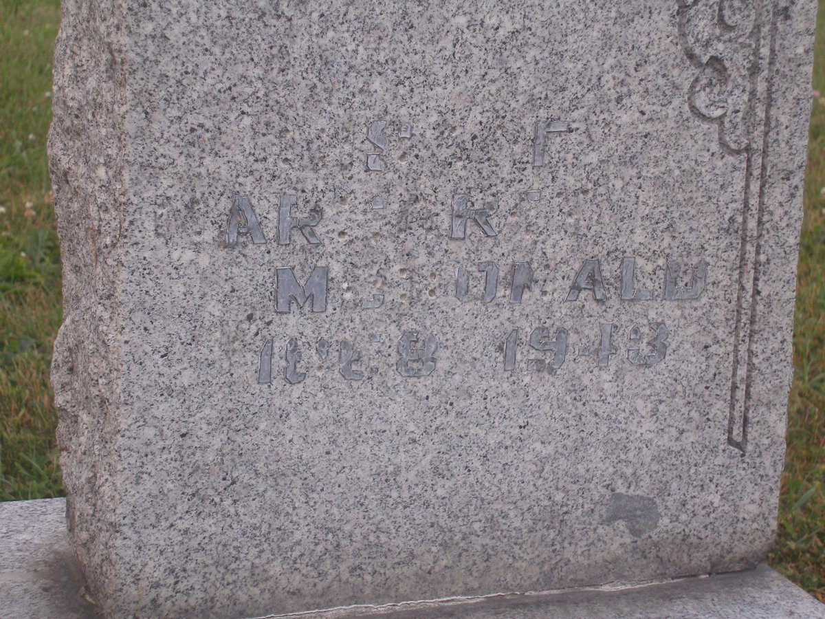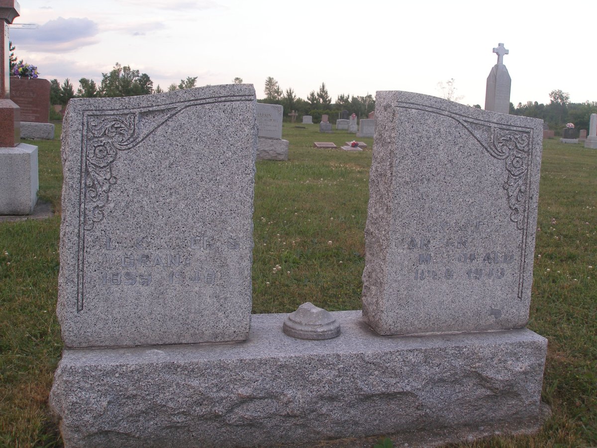 Right beside the Archibald MacDonald memorial, is another MacDonald. There are two markers to this site. The name on the left is Grant. The marker on the right appears to include the name Catherine Margaret MacDonald - 1888? - 1943.